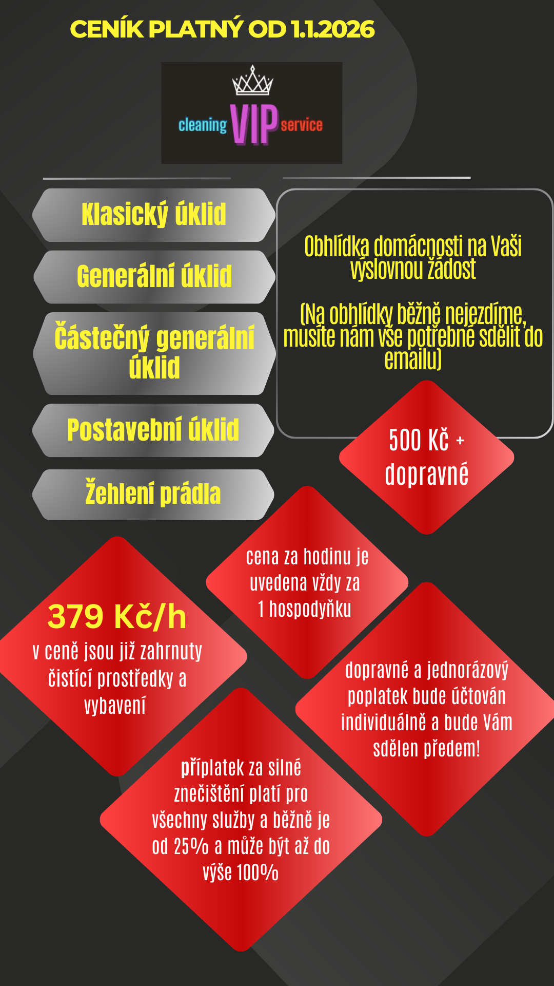 VIP úklidový servis s.r.o. (nejsme plátci DPH, cena je tedy konečná).